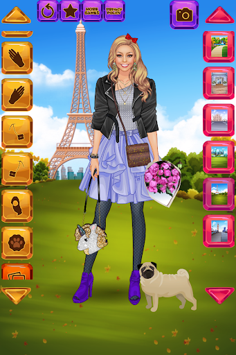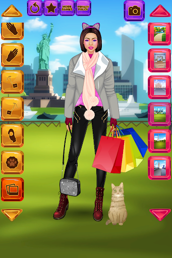Express your fashionista talent and try out ideas for looks and outfits in this free dress-up / make-up simulator for girls and women. Create a unique face for the dolls from facial features (for the eyes alone you can separately choose eyelids, irises and eyeshades!). Select one out of a few dozen hairstyles. Then rummage through a huge of wardrobe of dresses, tops, skirts, trousers, jackets and coats. Tons of accessories await as well: scarves, necklaces, bracelets, handbags, and even a dozen of cute pets! Pick the background for each city: Eiffel Tower in Paris, Big Ben in London, Statue of Liberty in New York or the Milan Cathedral in Milan. Come up with an outfit, hairstyle and extras that fit the city's vibe the most!