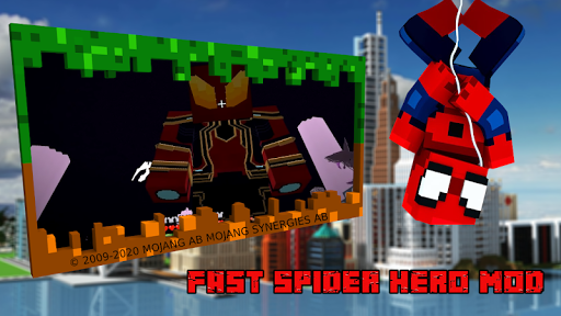 The youngest of the superheroes is a man avenger, a hunter for criminals, who caught both bandits and mafia leaders. After adding the hero's sandbox to the game, there will be no problems with fast movement between biomes, you will have a glove with sticky web that will allow you to move between skyscrapers and ordinary houses. Stark technologies have added a functional menu in which you can select several unique parameters that will increase the speed, strength and height of the jump. The supplement contains a suit of Iron Man and other Avengers. Also, gloves contain laser weapons that can both destroy bosses and help you move around the sky. You will fly up into the sky like a flash, so quickly that the enemies will lose sight of you, but they will all remain at the standard level, some changes will overtake hostile mobs. Flying goblins, thieves and other criminals have also been added, the pursuit of which will be your main task. After you put everyone in jail, start quickly exploring the area and battles with the stronger inhabitants of the desert lands - a withered boss and a siren head. The web will make it easier for you to move, and also allow you to control the enemy with a net. The armor contains wings for silent landing behind the backs of enemies. Certainly great functionality and your skill can make a splash, enemies will consider you a cheater with such and such opportunities. Invite friends, take part in races and battles, increased armor durability and powerful weapons will not allow defeat. Even without wearing a skin, you will have access to all the functionality of crafting equipment, put on a noob mask and let everyone think who is the real owner of the superpower among us. If you want to fight against a mob with all the capabilities, then go to creative mode, select the desired egg and spawn both good and bad mobs. If you fail to contain the horror that robbers, goblins and other mobs can bring to the villages, create equipment and, like sound, rush through taking away weapons and shackling enemies in a web.