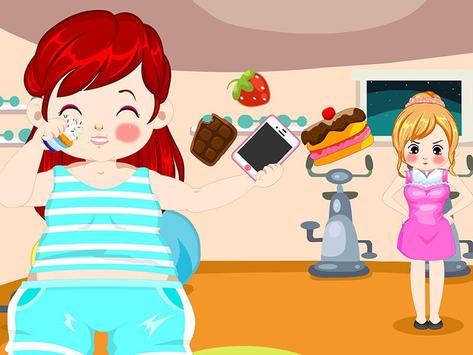 Fat girl is a greedy girl, usually do not like sports, she became more and more fat, become a fat girl. Her sister is very concerned about her, asked her to lose weight, and supervision of her campaign, can not be slacking. But Essar is still very greedy,when she exercise,she ofen slacking , eating cake, dress up hair, kiss baby, painted nails, kill insects, etc.. Can't let her sister find out, let's help her to be lazy!