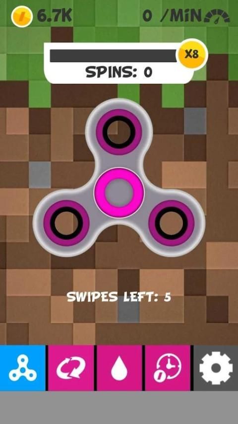 - Swipe down, swipe up, swipe left, swipe right, slide or scroll the fidget snipper to spin it.