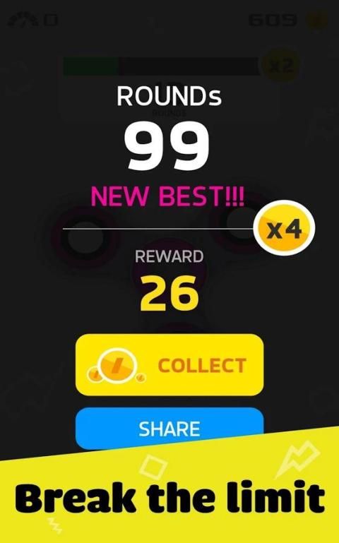 You have 5 swipes to set the best spin you can. Use your hand finger to swipe the spinner left or right, wait for it to stop and sweep the sweet rewards! Upgrade your finger spinner, compete with your friends and beat the records!