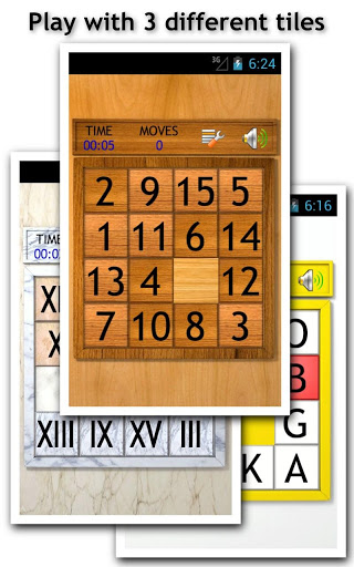 We have the classic wood theme, but if you want something more extravagant and exciting, we also have marble and plastic themes. On top of that this slide puzzle features 3 multiple sized grids with 4x4, 5x5, 6x6. Show that you can master the game by completing the 15 number order in least moves and shortest amounts of time.