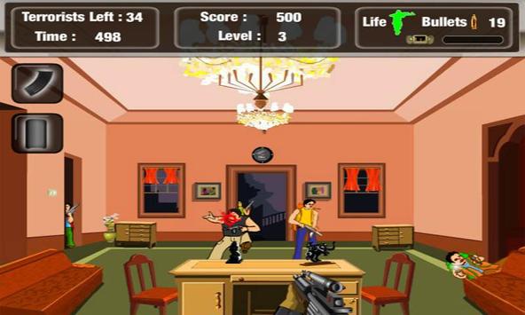 You are surrounded by terrorists and have to use your guns to kill them.Shoot all the terrorists that pop up from the hiding places. Stay alive for new levels.