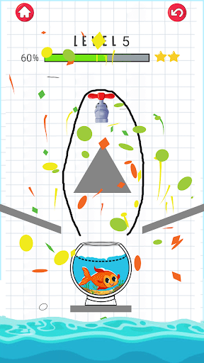 Jar is empty, Help Guppy the gold fish by filling her water jar, you need to use your wisdom and draw a line to make the jar filled up with water. Test your brain productivity and concentration power in this creative physics based game because each puzzle level can be solved in many creative techniques.