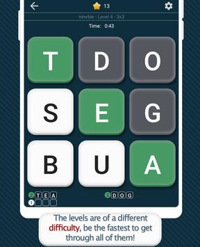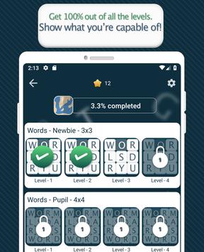 Our search word game will help to develop your skills. Go all the way from" Student "to" Scientist", your brain training depends on Your attention in our word finder puzzle. If you can create words from letters or find word fast - our word search game is completely for you. So, your speed and resourcefulness is the best way to have success in word find games.