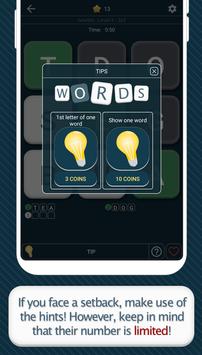 We introduce you a fillwords search word game - the game, where you can find words, connecting words and train your brain. There are a lot of interesting levels with different difficulty. You should find words from letters at the game field. The size of game field depends on the complexity of levels. If the larger the field, then the harder it is to find hidden words.