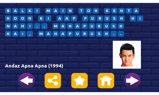 There are almost 2000 best Movie Quotes from English, Hindi & Marathi movies. If you ever liked a decent Movie Quote, it is highly likely that you will encounter it as one of the levels while playing this game.