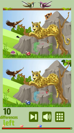 The aim of difference puzzle game is to find differences between two very similar images. If you like puzzle games, if you enjoy playing spot the difference games, you will love our free Find 10 Difference game as there are lots of hidden objects and animals to be found. There are color, shape and etc. differences in our game (which includes forest, lake, desert, sea etc. backgrounds).