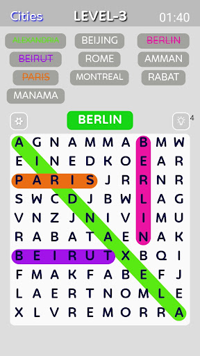 Welcome to word search game that will test your notice skills, Play this perfect Wordscapes game which is a brain teaser and put your mind in the relaxing mode. You are free to play it any time and any where because it hasn't time limit and no need for internet. No boring with large variety of wordscapes themes(Animals, food, music, school, countries, jobs, tools, fruits, sports, cars, birds, colors, cities, languages, clothes, transports, metals, geography, whether, ..). Connect letters to perform words and rise to next levels.