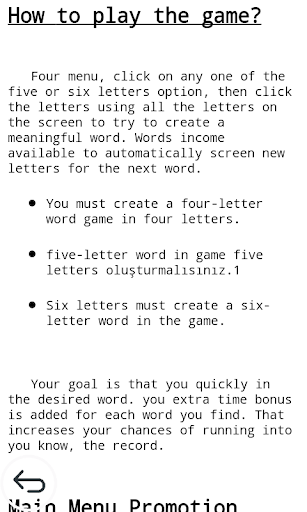 Four menu, click on any one of the five or six letters option, then click the letters using all the letters on the screen to try to create a meaningful word. Words income available to automatically screen new letters for the next word.