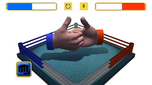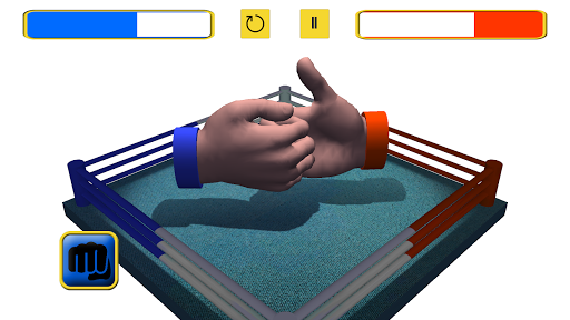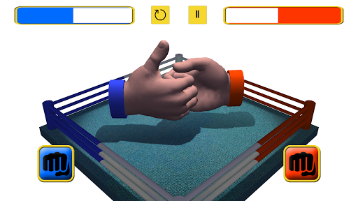 This is the famous thumb fight, where players hold each other's hands, and try to hold their thumbs together without releasing their hands. This game is an adaptation of this concept, where each player must accumulate points by pressing with the thumb without being pressed by the other, and whoever is pressed loses point. Whoever reaches the maximum points first wins or eliminates all the opponent's points.
