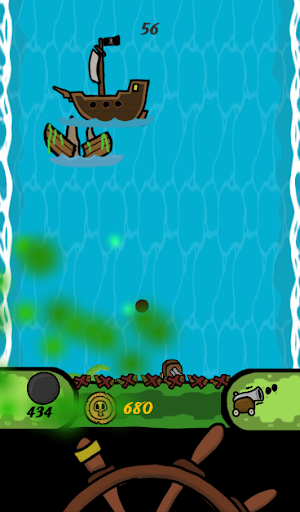 In Fire Ye Cannons, you are Captain Kneebone trying to find the island of Plunderer's Cove before other pirates can take your treasure! Upgrade your ship's hull to be able to take more damage and survive long enough to make it to Plunderer's Cove!