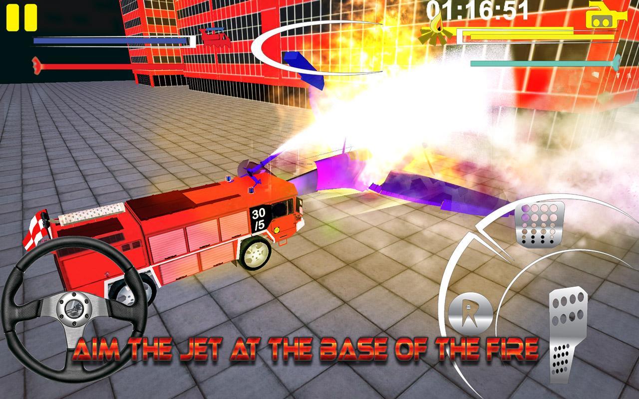 Hop in and drive the fire truck to go on rescue mission and extinguish fires on buildings, air planes, accident sites and be the firefighter hero! The alarm goes off and it’s your duty to drive the fire truck to the point of the emergency, get there as quickly as possible to take part in the firefight and rescue the people to be the firefighter hero. Extinguish the fire on airplanes, vehicles, buildings, restaurants and where you are called for your duty.
