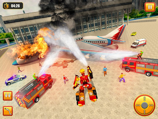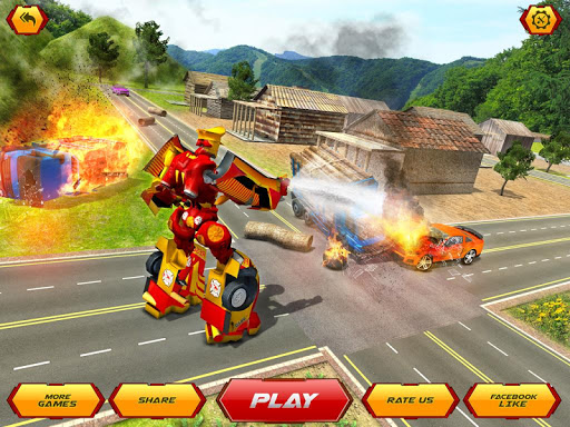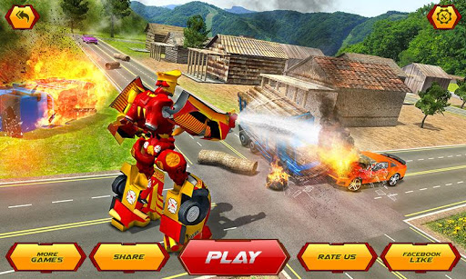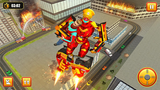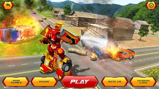 Welcome to the new firefighter robot transformation game 2020 in which you are able to transform the flying robots into the firefighter truck.