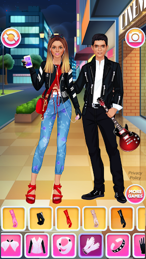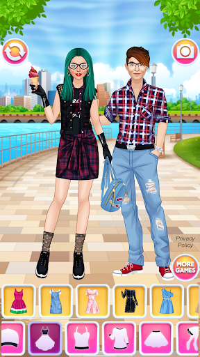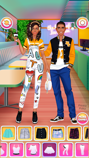 This new makeover game offers a stunning, 400 items stong, selection of fashion design options for all fans of beauty and virtual cosplay. Rummage through dresses, tops, skirts, pants, jewelry, make-up, hairstyles, accessories - over 25 categories in total. Design millions of outfits: a cool popular girl, a geeky intelligent STEM nerd who will go to college, a career-oriented business student, a subculture adept with unusual piercings - you can style them all, and more. Young fashionistas will love the role of an outfit designer and image maker for the cute couple of teens.