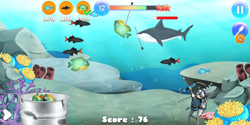 Fish Hunting is an amazing fishing game with simple user interface. It is simple yet interesting game in which user is provided with a bow and arrow, you need to hunt the fish to earn the score, you get different challenges, also you get addition character like shark etc with will add more fun to the play and you can change the power, total 6 powers which you can get level by level to hit more fish, challenge yourself to get more score. Kill your spare time with fun.