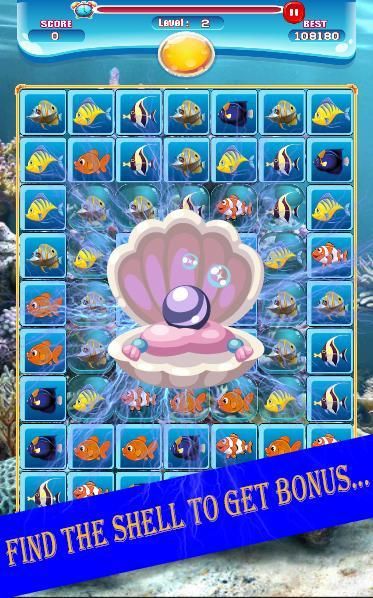 2: Match the fish until the board transparency,the Fish Kingdom Match-3 will appear.