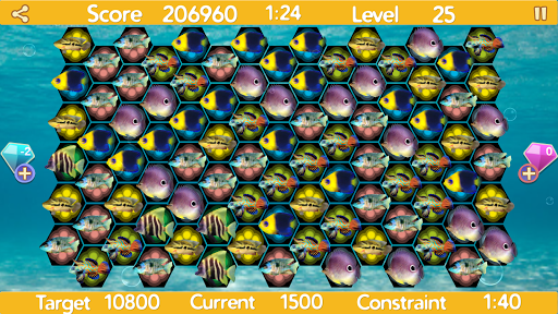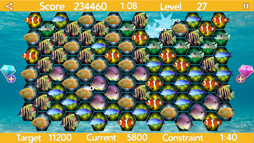 Powerups added with ruby and diamond.(Which will help you in clearing future levels. Giving more power to match fishes.)