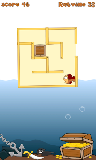 Rules are simple: The fish is captured in the wooden box and needs help to escape. The box represents a maze. Find the path through the labyrinth. Swipe the screen to rotate the box. Watch out for stones, collect all gems and release the fish. Help the fish fall through the holes of the labyrinth into the water.