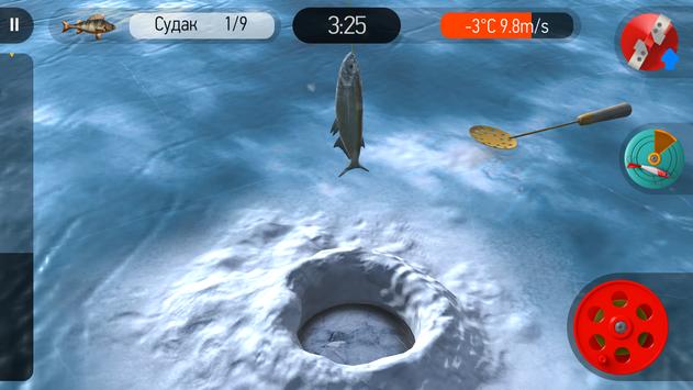 After a countdown with clicks, move the player to the ice. The "Drill" button allows you to drill in the specified place, after which you go to the scene with the hole.