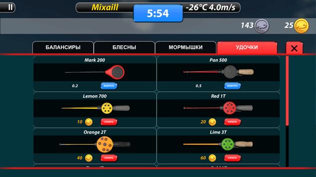 IMPORTANT! Before fishing it is necessary to select an available tackle (3 tackles worth 100 coins are available.), We buy any (see what kind of fish this is on the bottom) and then press the "select" button. Gear is assigned, press the "coil" button the fishing line is unwound and it remains to wait for the bite. About the biting, the rod is cut, it starts to bend. We press on the fishing rod and sharply snipe up we carry out cutting of fish.