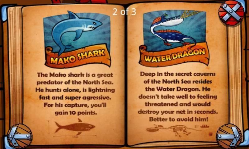 Bergfinn and his friend, Thorkel, must catch fish for tonight's dinner. Since they are providing a meal for the entire Viking village, they need your help to find as many creatures living in the sea as possible. Size does matter, too!
