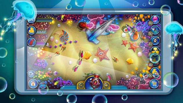The graphics of the Fishing Joy Paradise is simply stunning, music and sounds are on the highest level, everything done so it's a pleasant and enjoyable experience. Be the best fisher in the deep ocean - aim your multi-level power nets and shoot to catch fish and earn experience and gold coins. Also - when you have caught enough fished - your cannon will become insanely powerful SUPER ROCKET and will simply annihilate everything on its path - even the deadliest and the most difficult creature to catch - Big Shark. You have many different missions to guide you in the beatiful world of underwater fishing.