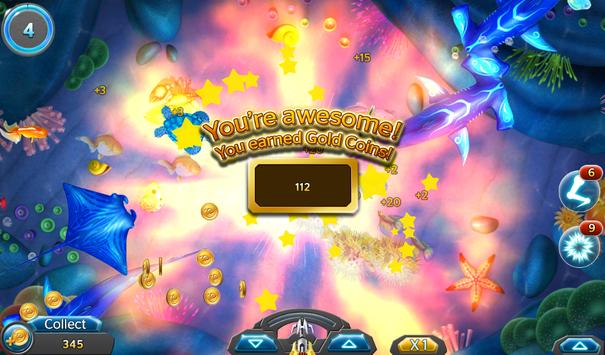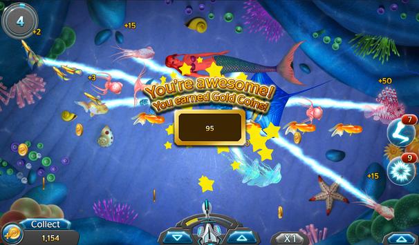 There are 7 powerful Guns and Bullets to choose from in size and range. Gun wisely using small Bullets for small fishes and big Bullets for large prey. The cost of the bullet is equivalent to the Level of the Gun (Example: Lv. 1 Bullet will cost you 1 Gold and Lv. 7 Bullet 7 Gold).