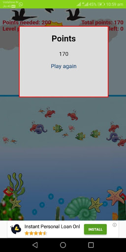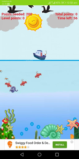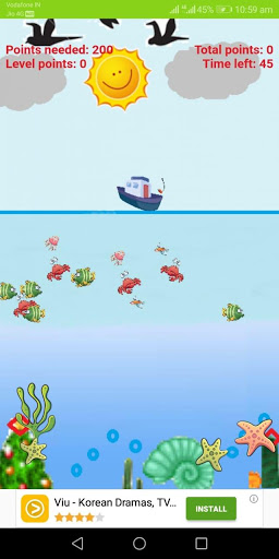 in this application under 1 minute you can score the points through catching fish with fishing rod.
