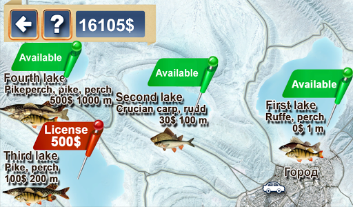 If you've already earned money by catching perch and ruffe at the city lake, you can go to another lake. You need to buy a license and prepare some money for the trip.
