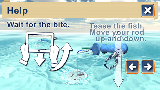 The make fish bite, tease it moving the rod up and down by tilting and moving your phone as if it was a real rod, or by swiping your finger across the screen.