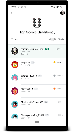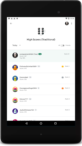 - Top 10 on-device high scores list