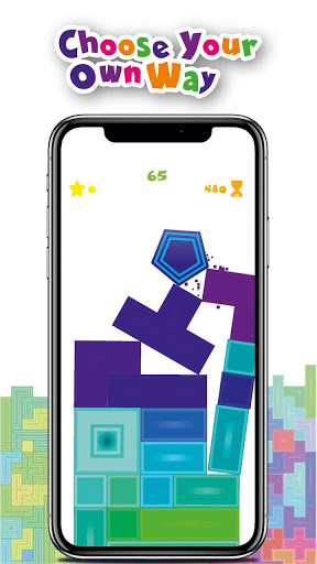 In the game, you are challenged to interact with a tower block of varying shaped bricks upon which rests a pentagonal block. The aim is to get the pentagon down to the tower block by the gravity to earn points. You do this by tapping the bricks to make them disappear. It sounds easy, but when the pentagon starts to rounding or the tower swings and tilts, and other secret features start to happen you will find it is not as easy as you originally thought. Within the time new levels continue to occur. If the removal of the blocks topples the tower or the pentagon gains momentum and rolls off the screen, then it means that the game is over and you have to start all over again. So, be careful not losing your balance.