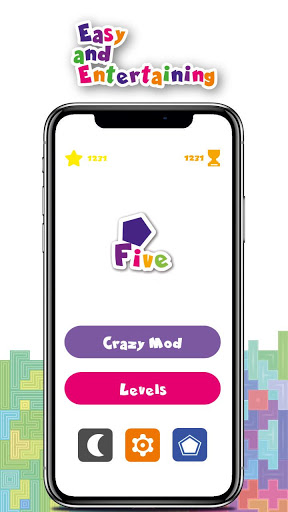 This game is challenging, exciting and entertaining at the same time. FIVE is a game that you can play anywhere at anytime. There are two options to entertain you in multiple possibilities . You can prefer to play in levels mode and also the "crazy mode" which is endless combination of bricks. Another feature that we think about you is the night mode which provides more comfortable view for your eyes.
