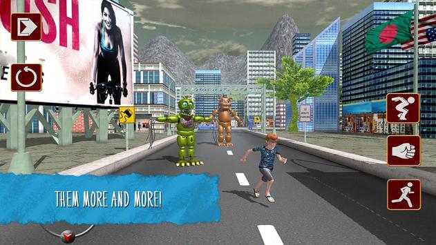 These five nights will be the most horrible in your life, because you have to escape from horror, survive in a deserted city and escape from Freddie - robot crows! This monster-toy wants to eat you! So hide as you can!