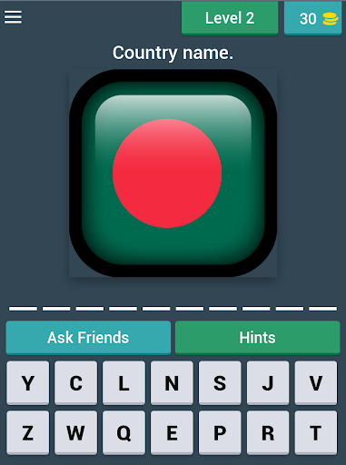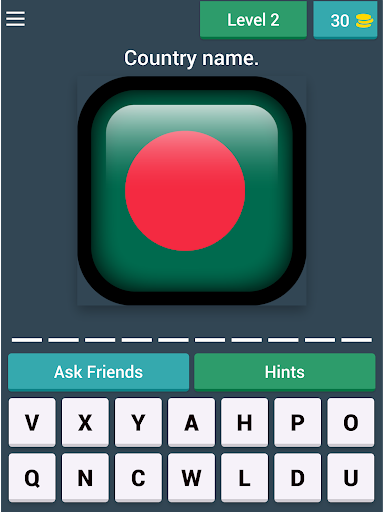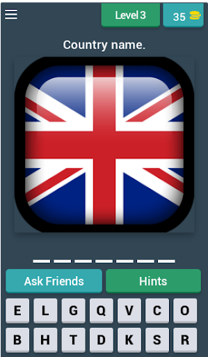 In "Flag Quiz Game ", you can use hints or ask help from your friends, if you need help.