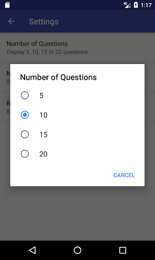 • Select the numbers of questions ( 5, 10, 15, 20 ).