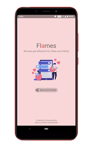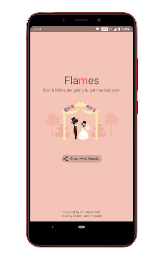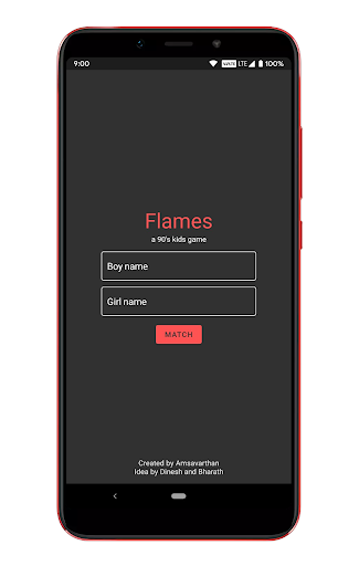 It is a love calculator, a game and a love tester which can be played by anybody. The app just needs your name and your partner’s name. The partner may be your friend, your crush, your lover, your spouse. Each word in ‘FLAMES’ has a fun-filled meaning and I am sure one would enjoy it!