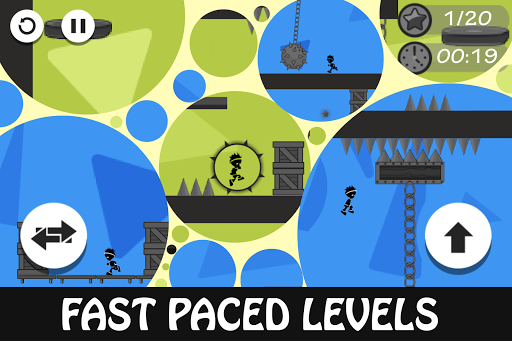 Simple and attractive backgrounds. New Obstacles on each levels, spikes, cannons, scary blade, swinging blades and spikes, hanging spike balls, trampoline platforms.