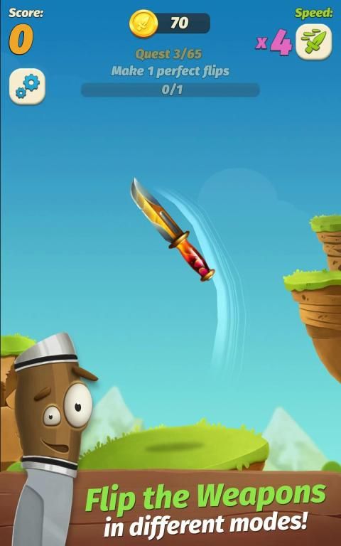 Flip world famous knives in different locations, improve your skills! Very soon you will know how to flip axes without missing and make perfect hits on any standing or moving target! Become a Guru Master and get a cool collection of rare knives, iron axes, legendary swords and different famouse weapons!