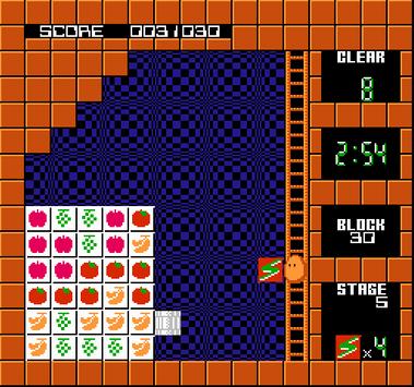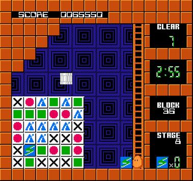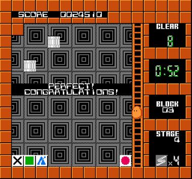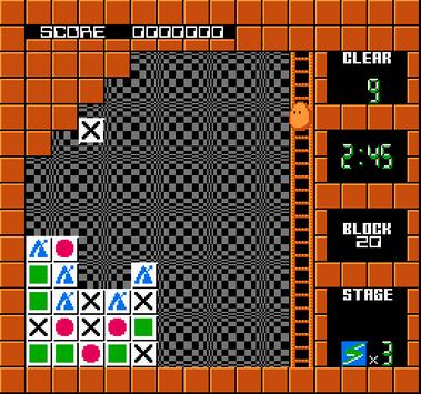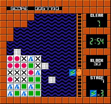 Flipull involves several different types of blocks, bearing symbols such as squares, circles and crosses. Using a small yellow object to direct a block across onto a particular section of a shaped wall. It will then rebound onto a set of blocks at a particular angle, with the intention of removing similar blocks it touches. This is done against a time limit, and there are special blocks to help out with extra lives.
