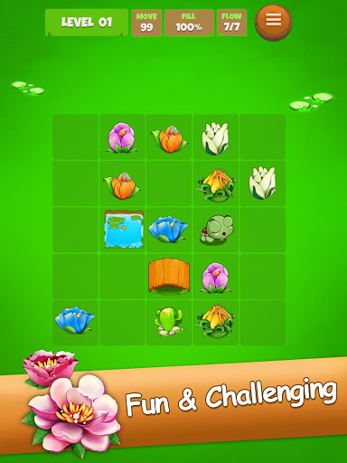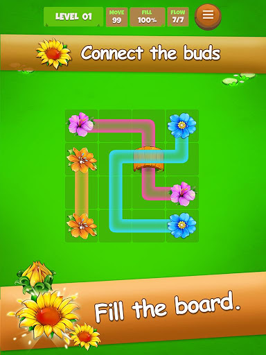 Connect the buds with the same color to make them bloom, fill the board to finish the level, super simple and a blast to play!