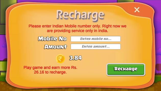 If the answer of above any question is Yes, than this game is for you. How about if you can earn money by playing game? If you are thinking of it, hurry up and download this game. Start earning money/recharge by playing game. Collect as much coin as you can by playing game and get real money. Use this money to recharge any indian mobile number.