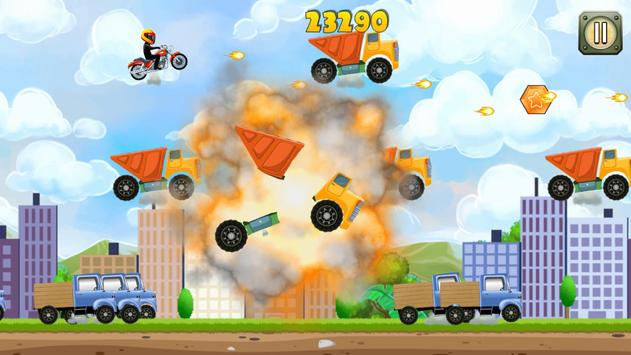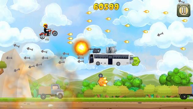 A motorcycle with a flying engine goes on a adventure race against other big heavy vehicles like trucks, buses and more. Shoot other enemy vehicles to defend yourself. Lots of explosions and excitement.