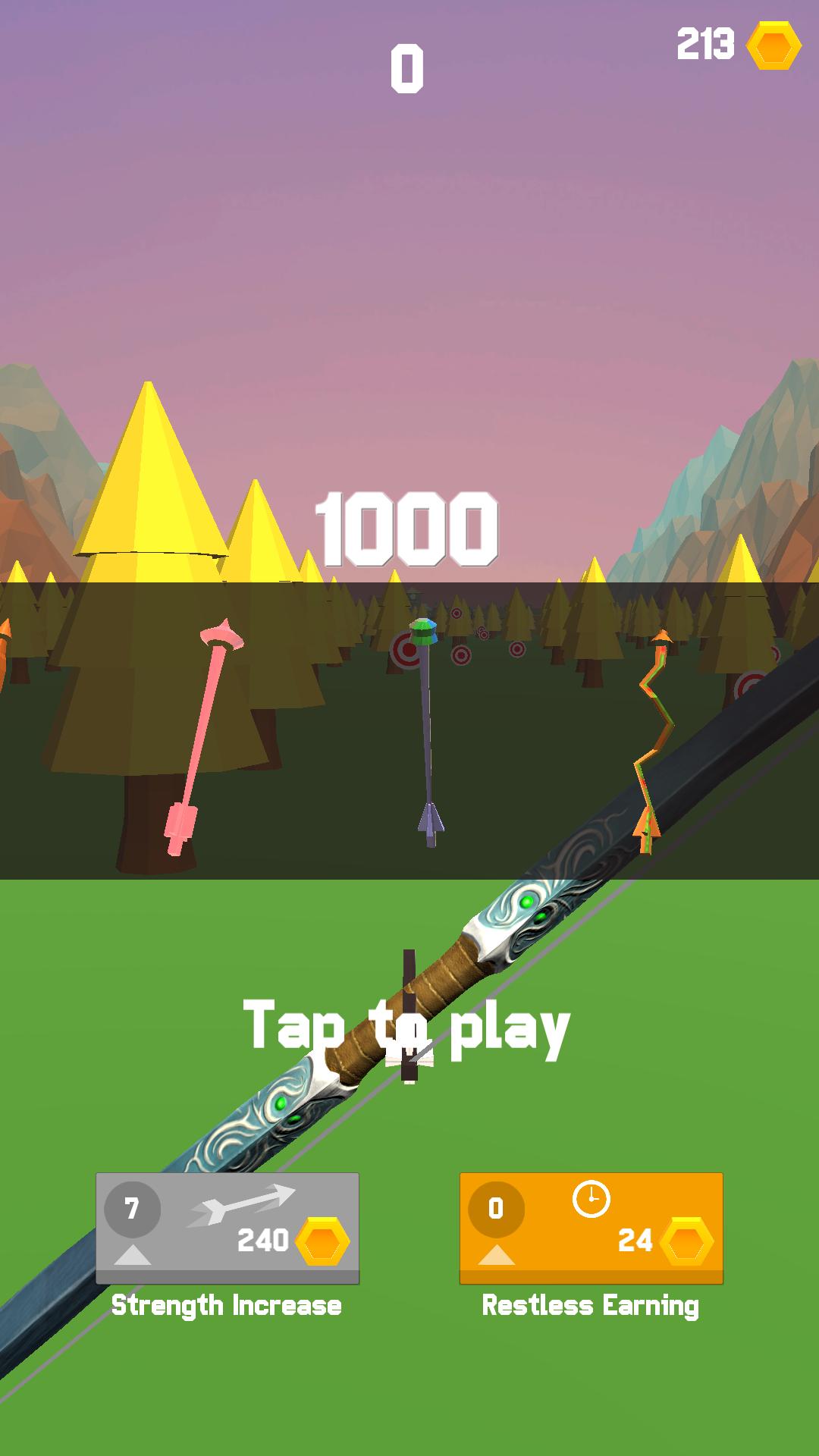 You can use coins to upgrade your strength and distance skills! You can also use coins to buy different kinds of arrows with colorful appearances!