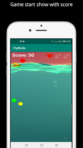 first version of Game name is Flying Fish Game. In this game player with single bird to destroy the all the ball except red and get a score 10 because the when bird destroy three red ball the game is over and start again for further play.