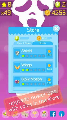 * Collect coins and gems to upgrade your abilities and resurrect when you die