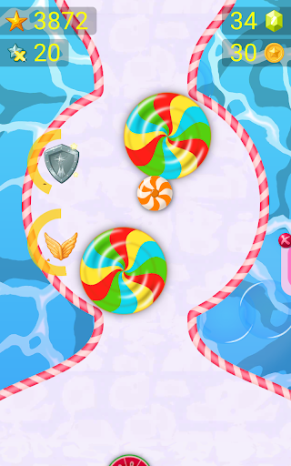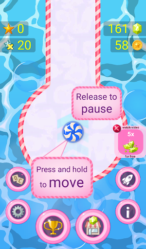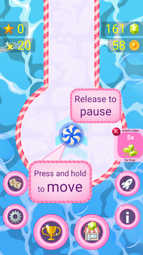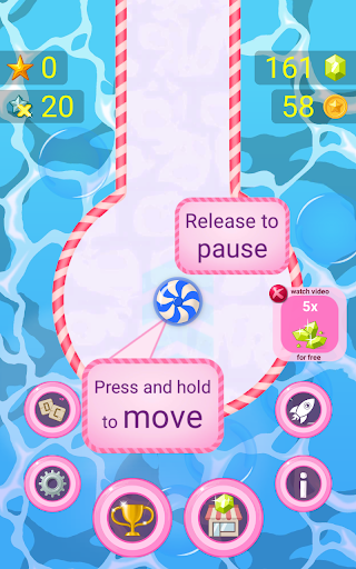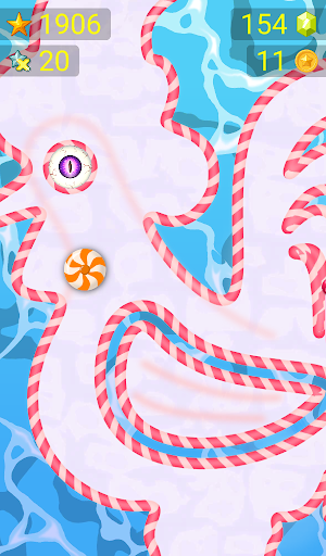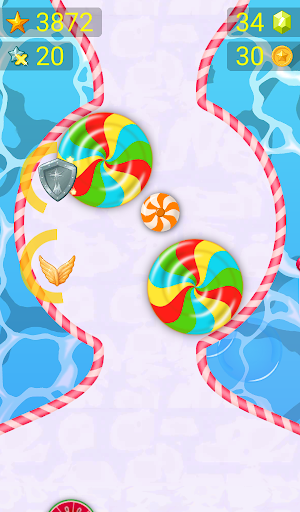 Rush with your skillful finger through this sweet sweet candy world. Run fast and try to follow the line without crushing in the dancing candies. Don't touch the sugar candy borders and be aware of the rolling obstacles. Slither as far as you can, avoid the obstacles and unlock new challenges.