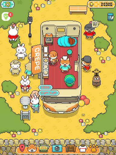 Prepare crepes in the cooking game and design your shop with furniture you like. You can dress up the adorable pixel dogs, too. There's a Shiba Inu, a retriever, a beagle, and more.