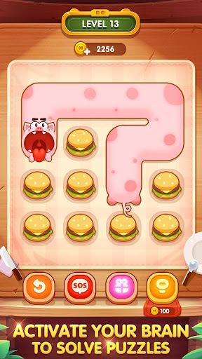 Foodie - Fill One Line Puzzle is an interesting puzzle game with simple & easy-to-learn gameplay. Just drag on the little happy pig and let it eat all the food on the board by drawing out one-line on the screen as quickly as you can.